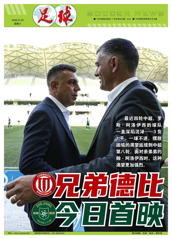 04月25日讯 今晚成都蓉城将对阵浙江队,《足球》报记者左瑞发表名为《阿洛伊西兄弟德比,今日首映》的文章,谈到对于本场比赛的看法。