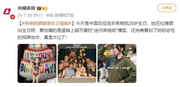 此外,吴艳妮还晒出了生日party照片,最抢镜的蛋糕上,超可爱的“迷你吴艳妮”模型完美复刻了她标志性的招牌动作。