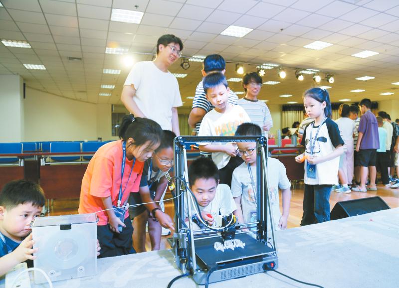 本报讯(新乡日报全媒体记者郭书武文/图)8月26日,市青少年活动中心内惊叹声与欢笑声不断,一场以3D打印技术为主题的科普活动在这里举行(如图)。新乡学院3D打印学院院长片瑞媛带领小朋友们走进神奇的3D世界。